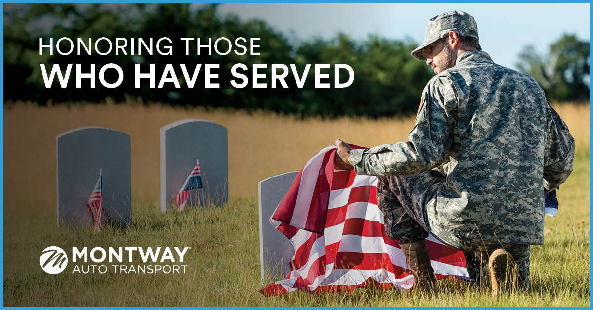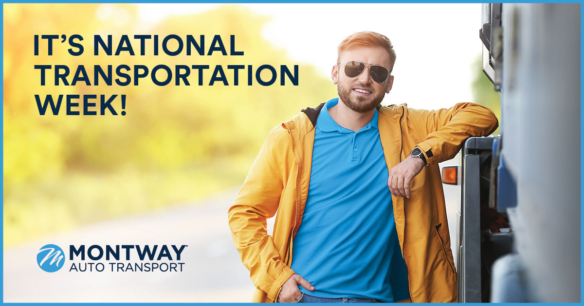 Images accompanying posts for Montway Auto Transport's Facebook page, from April to June 2023.